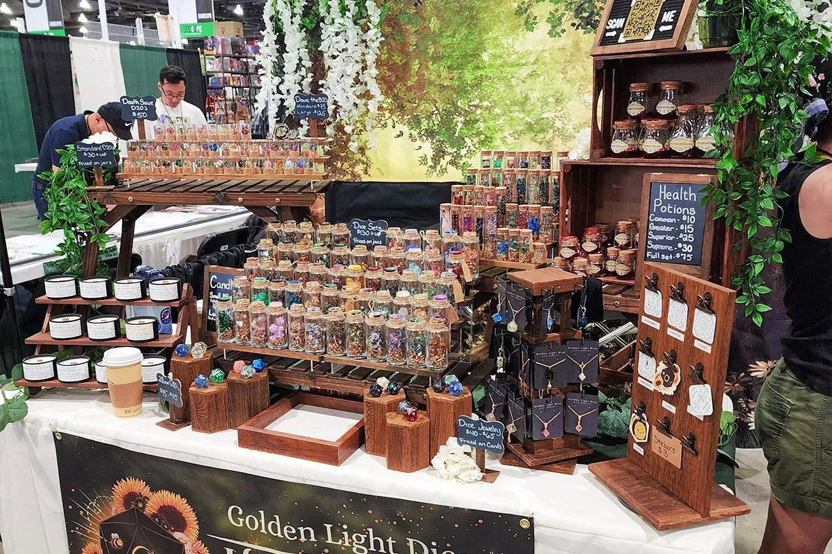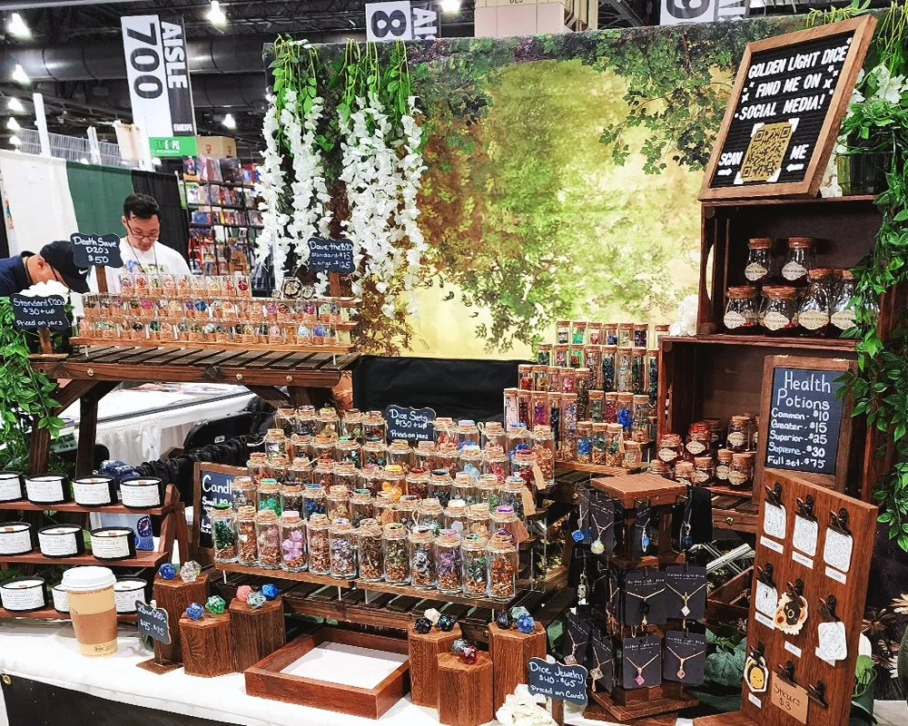 Quality and style are top priorities for Golden Light Games. We understand the impact that a cohesive motif can have on an attendee’s experience, and always strive to make them feel at home in our little slice of fantasy. Our goal is that, customer or not, they enjoy their time spent in and around our booth.