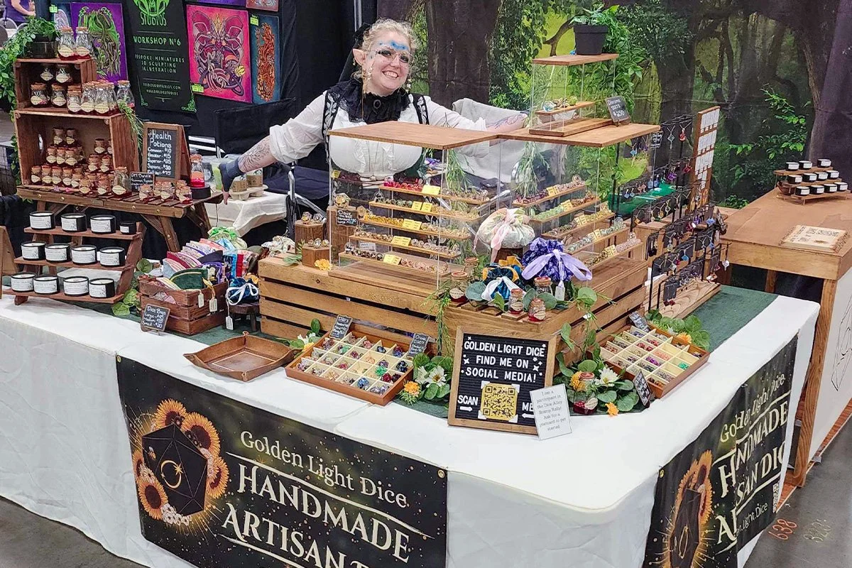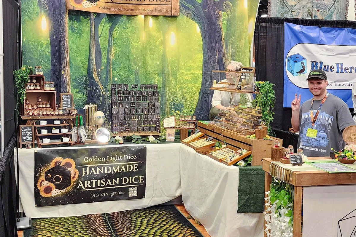 Vending events large and small since 2019, Golden Light Games brings veteran experience and quality craft gaming goods to shows across the east coast and beyond. From table-top expos to anime cons, we’re at home in a wide variety of environments, and always looking to expand our lineup.